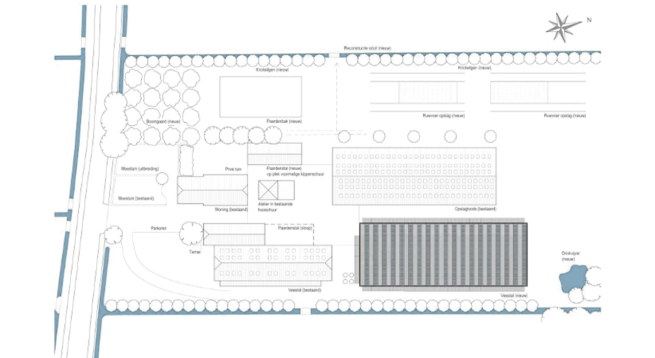 For the farmer Van Dijk, FBW designed a new stable for sixty cows on the yard around the monumental farm Birkzicht in Soest. In the design, the general romantic image of farms was viewed as outdated and the stable was conceptualized as a factory.