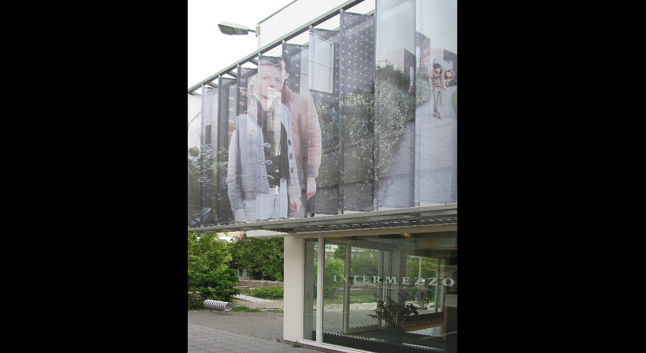 Next to a full rehabilitation and rearrangement of the interior and furnishing of the building, the main intervention was to add brises soleil to the glazed façade to protect against the sun and at the same time used to expose the corporate identity of Intermezzo by printing attractive imagery on the perforated screens.