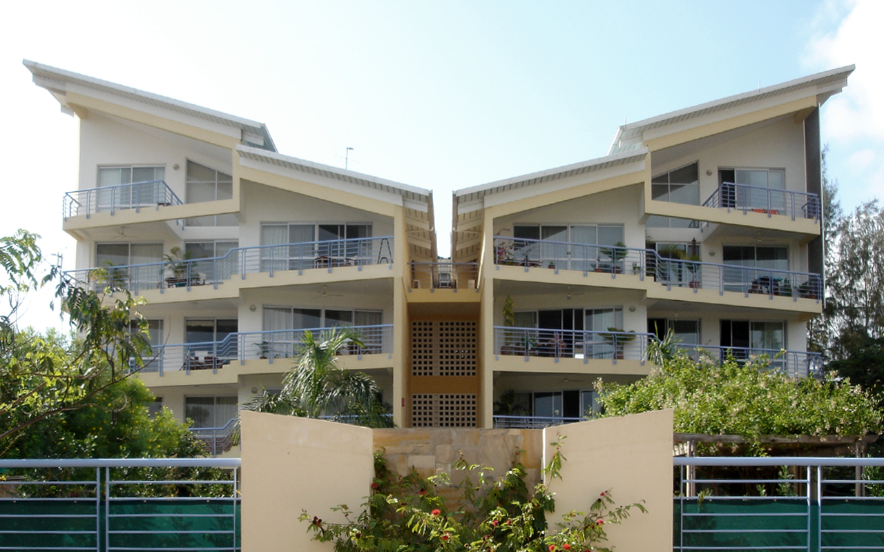 The development clearly confronts the fashionable Swahili-baroque and hacienda-revival styles. These were thought to be anachronistic, boring and something more up-to-date was necessary. The heaviness of the current structure is challenged by applying light-weight structures for roofs, balconies, staircases and east-west facing second-skin facades. These second skins are meant to prevent direct sun impact on the walls and to screen off the balconies from the view from adjoining plots.